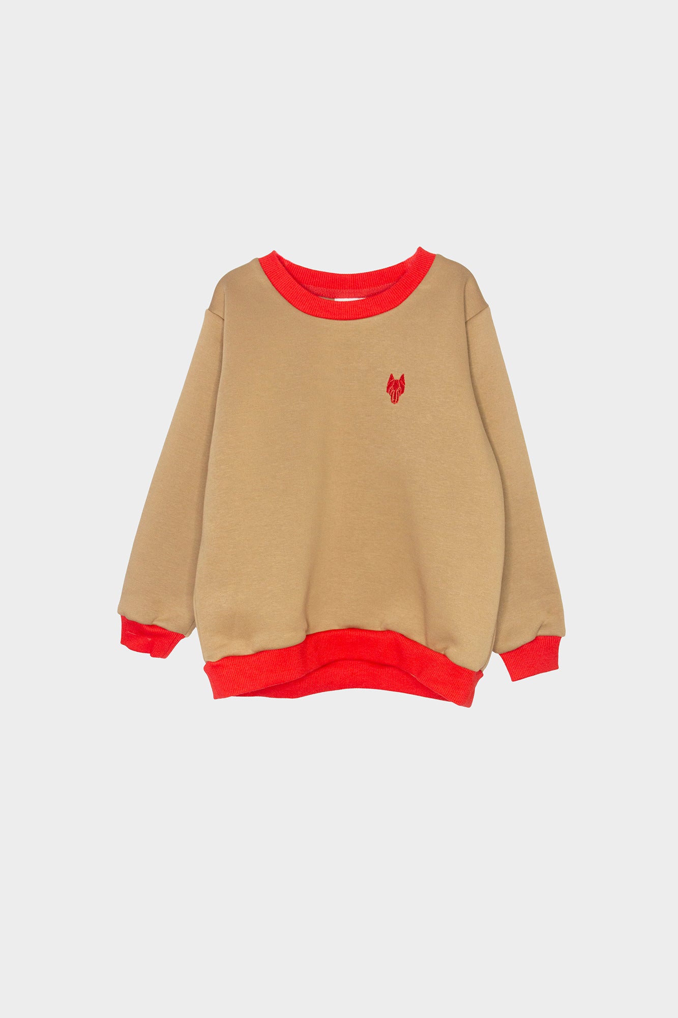 Get ready to be the coolest kid on the block in this beige sweater featuring our iconic One Wolf logo in striking red embroidery. Made with premium materials like 90% cotton and 10% polyester, brushed to provide ultimate comfort. This sweater is not just stylish but also a quality product. Perfect for keeping your little one warm and cozy while making a fashion statement. It's a win-win!