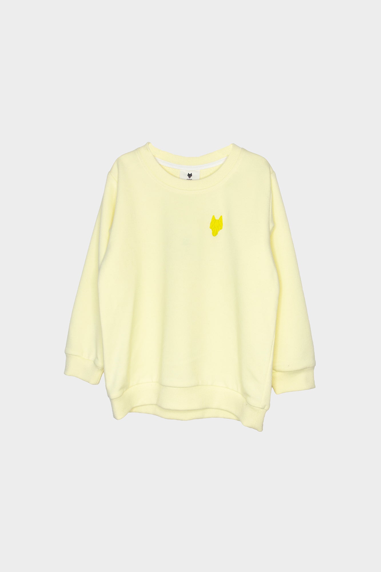 Kid's sweater with small One Wolf's logo embroidery on chest in yellow colour.