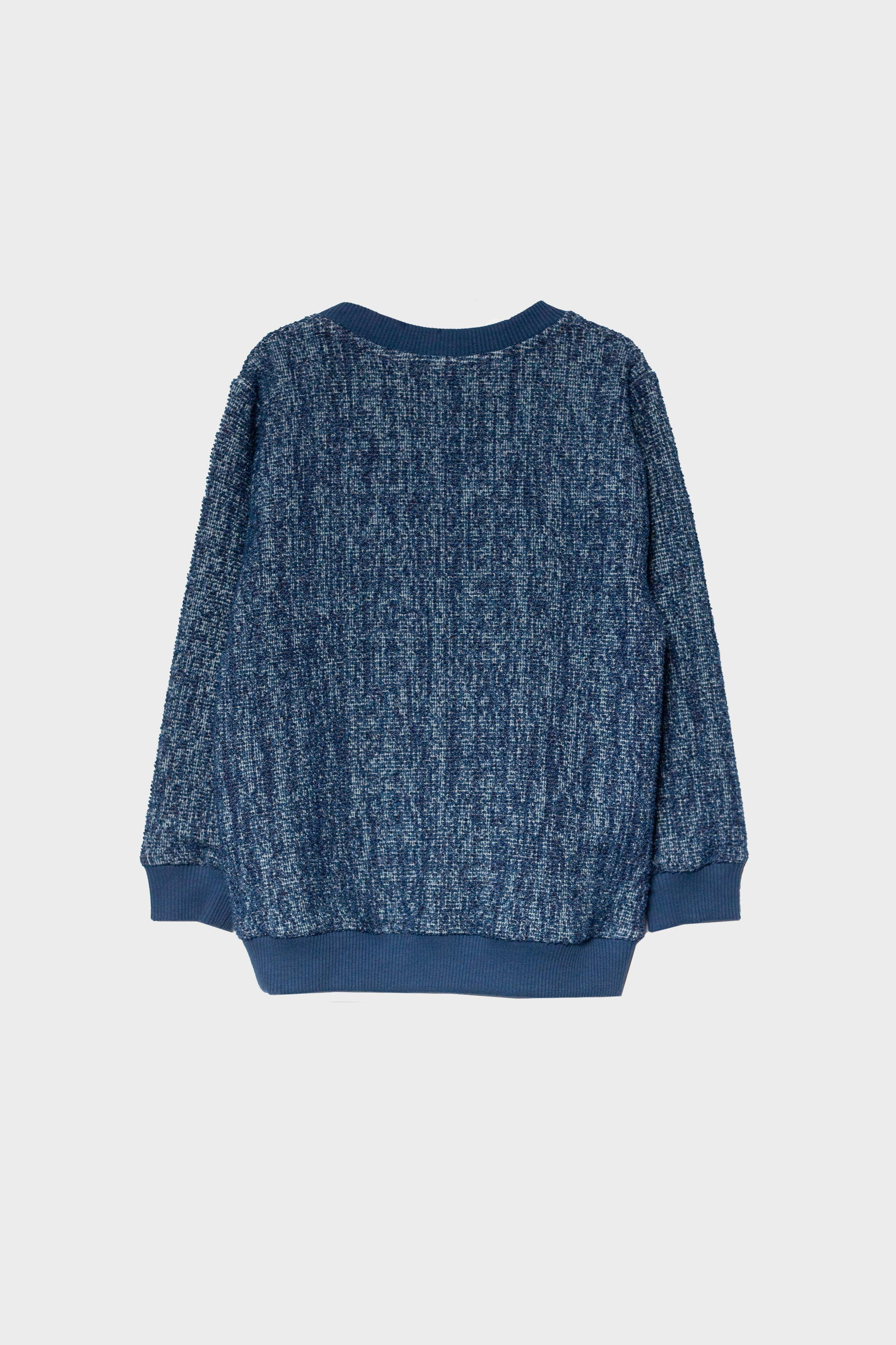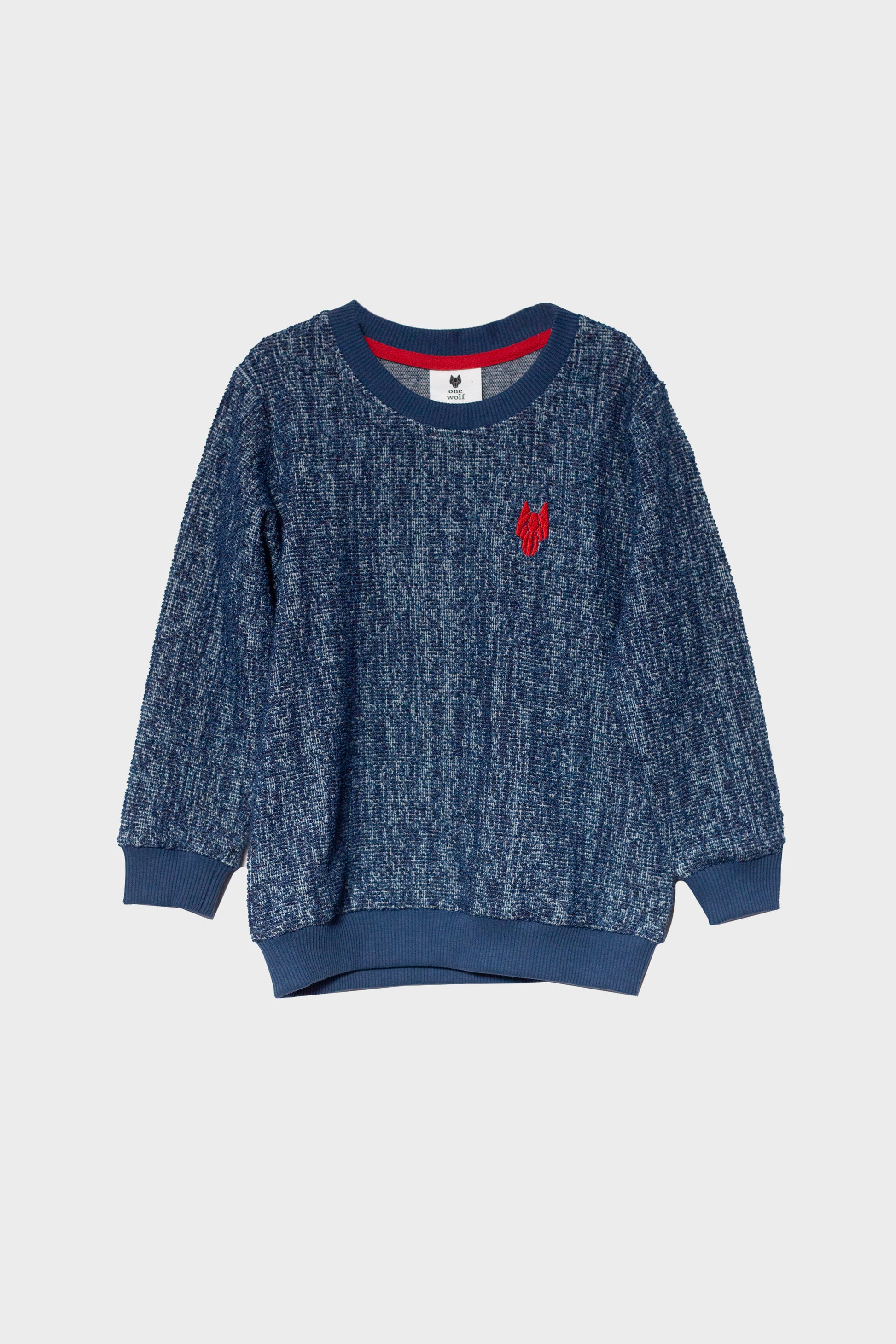 Kid's sweater blue with small One Wolf's logo embroidery on chest in red colour.