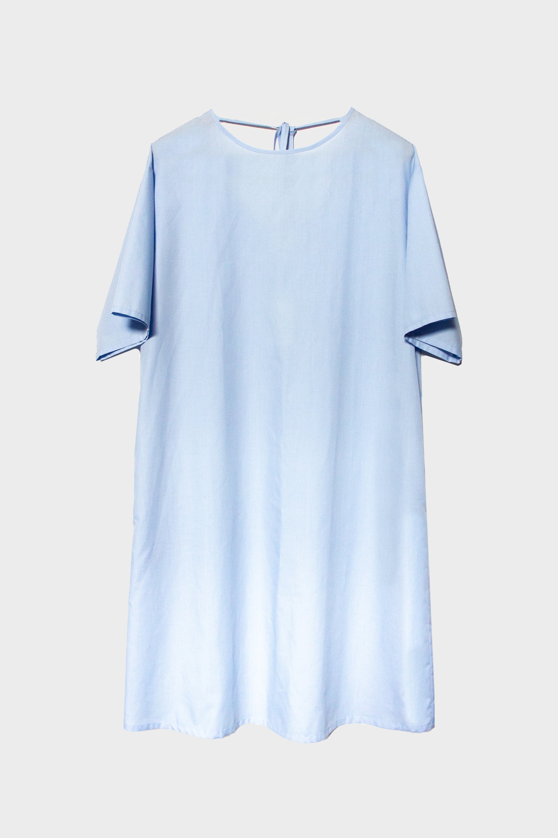 Comfortable fit dress with medium length sleeves, side pockets and straps on the back. Handmade in Latvia by One Wolf from light premium quality fabric made in Italy, 100% cotton.