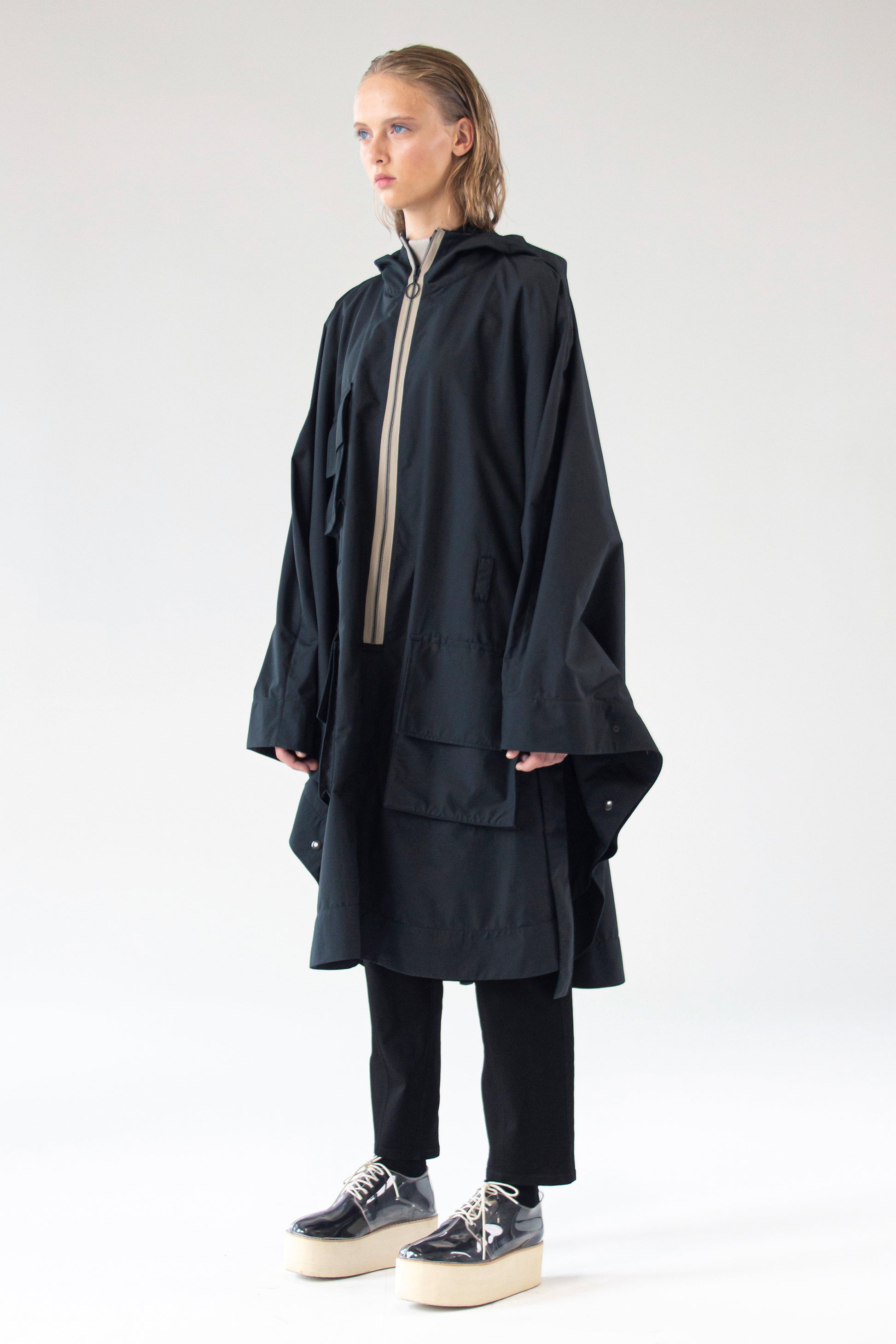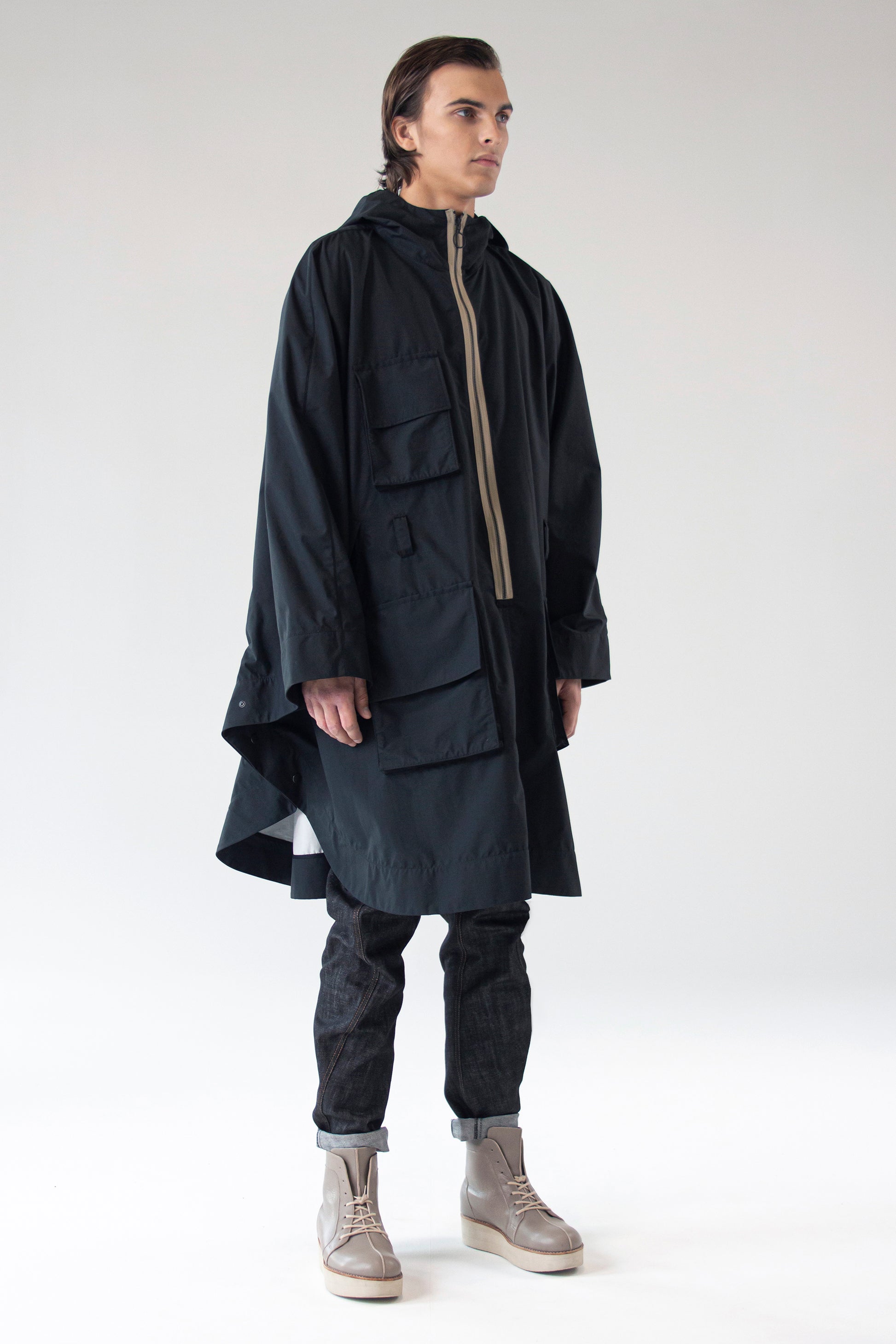 A universal, waterproof unisex poncho to fit all sizes. Folds up at the sides with press studs, fastens with belt. Zip fastening at the front and multiple pockets. The poncho's cotton material has a water-repellent coating for practical use in rainy and windy weather.