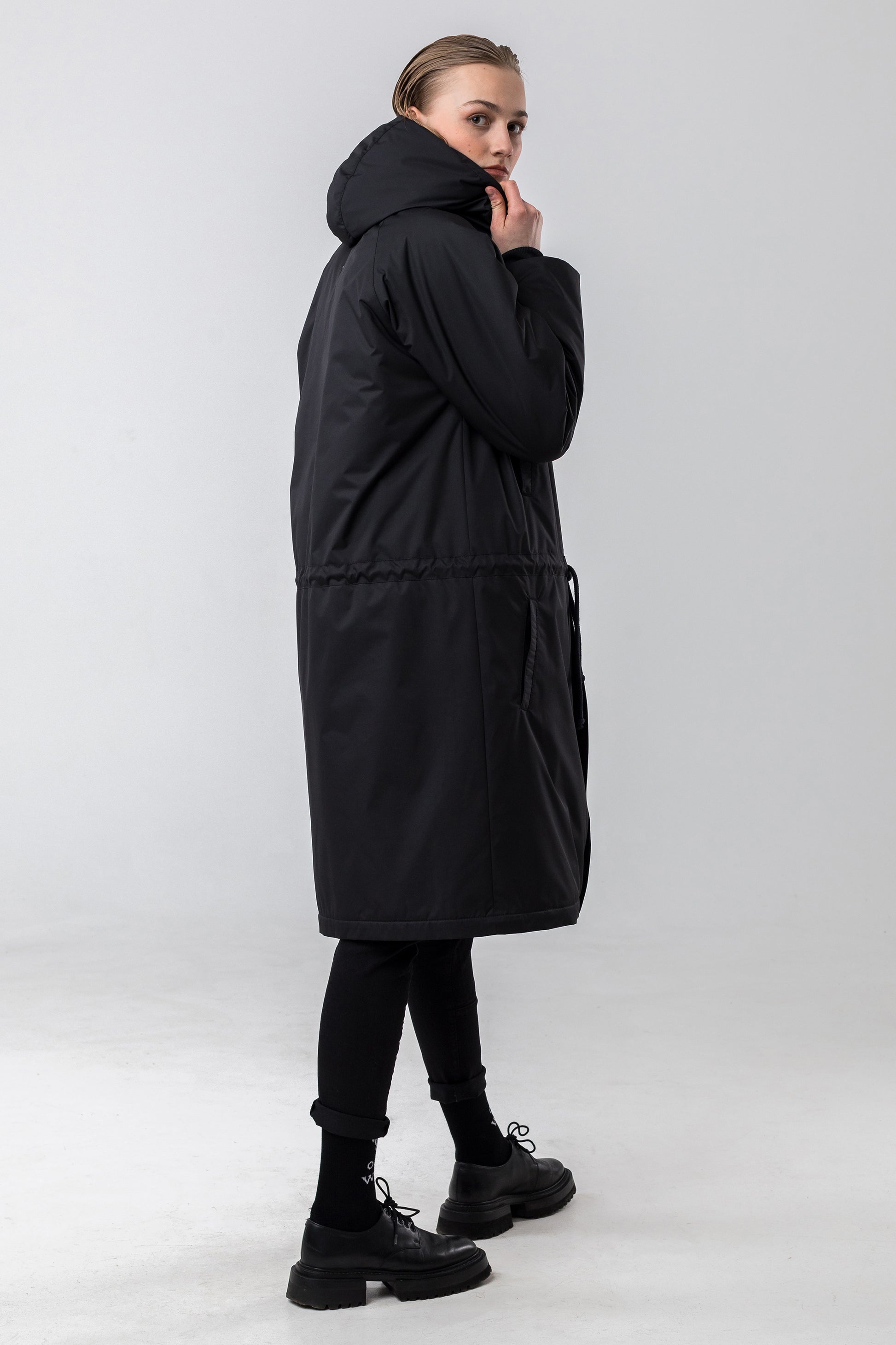 Get ready to conquer winter in style with the UNIFORM OFF-SEASON Parka! This parka features an oversized fit that is perfect for both men and women, and is made with a sleek PU coating and 100% polyester material for ultimate durability. It comes with pockets, a zipper, and press-buttons, making it both functional and fashionable. And let's not forget the large hood and adjustable rope at the waistline, providing both practicality and style. With its classic black color and premium quality, this parka is the perfect addition to your winter wardrobe. Don't sacrifice style for warmth - the UNIFORM OFF-SEASON Parka has it all!